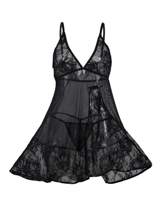 【OY】oy-2073blk・3XL【大きいサイズ】黒のフラワー刺繍が美しい ベビードール&Gストセット【スケスケ】【スパンコールつき】【クイーンサイズ】【エロ下着】【セクシーランジェリー】