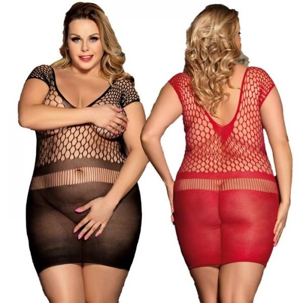 【OY】oy3171P クロチェットネット 半袖 ボディコン ドレス 【大きいサイズ XL】【ボディコン】【プチプラ】【bodystocking レース・網】