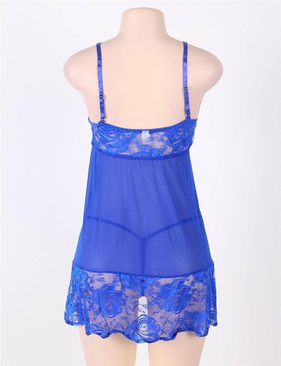 ◆OY80158青 L/XLサイズ  大きいサイズのキュートなベビードール【レース/メッシュ】【ベビードール】