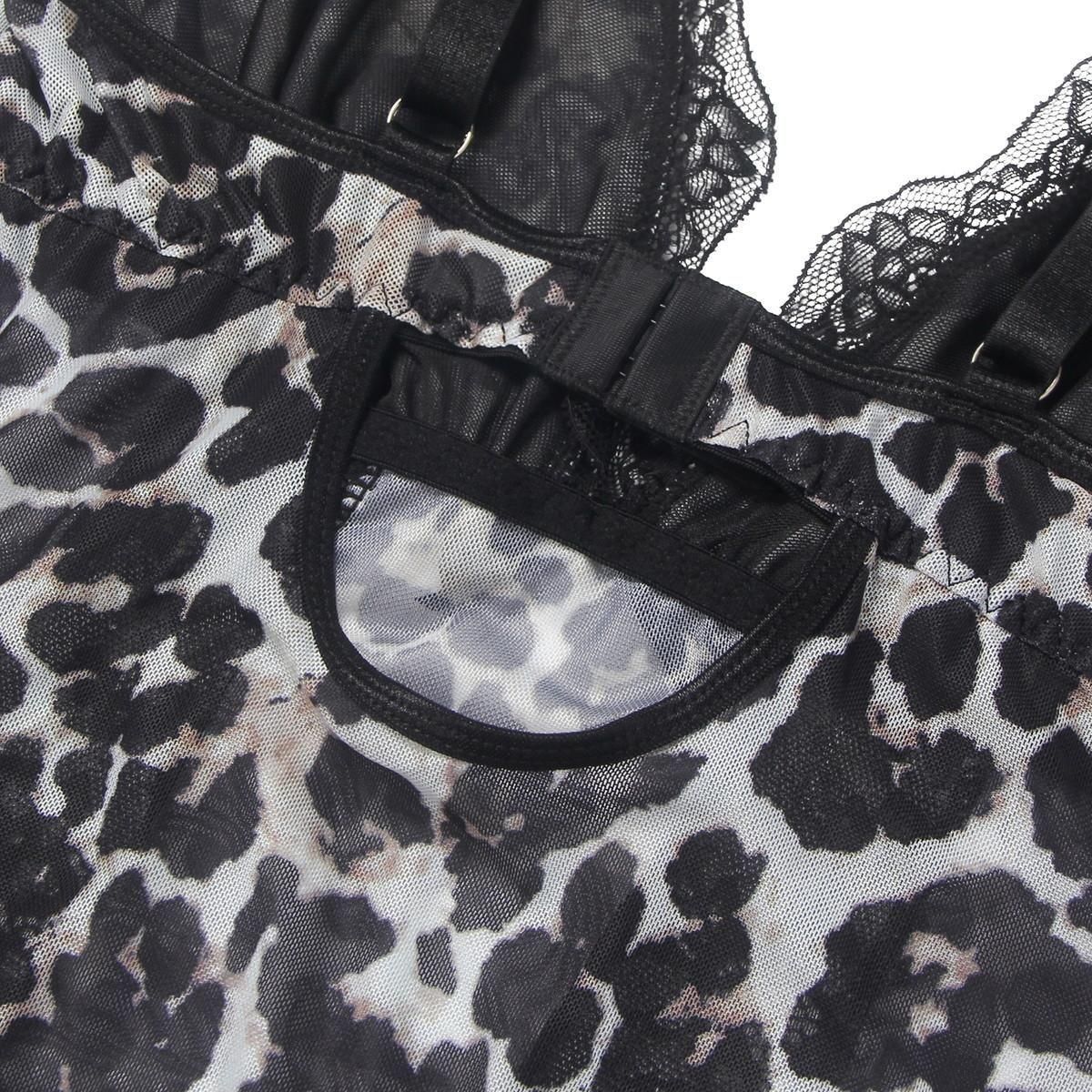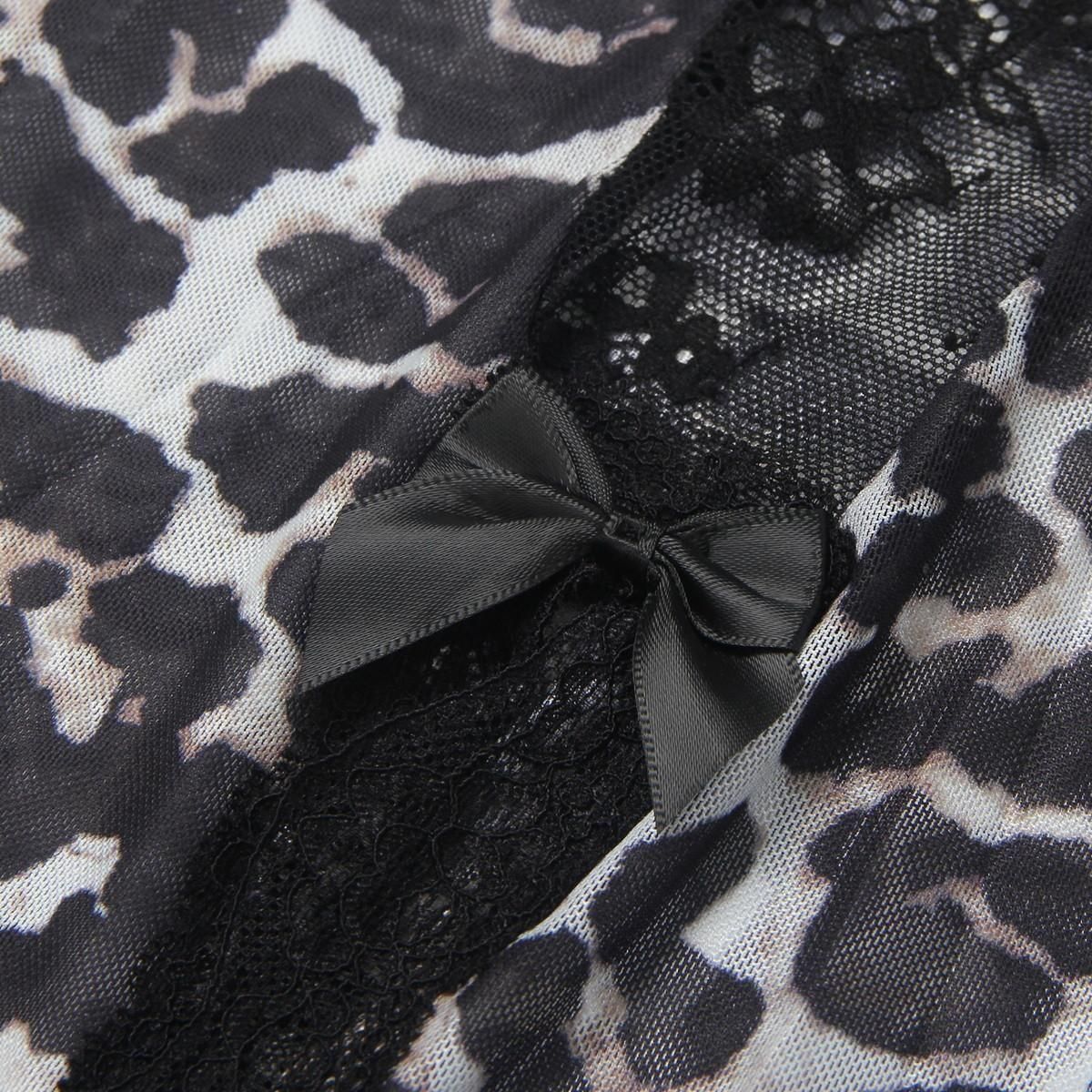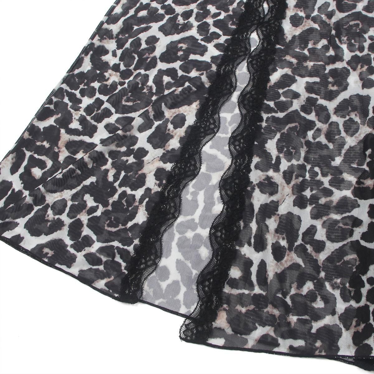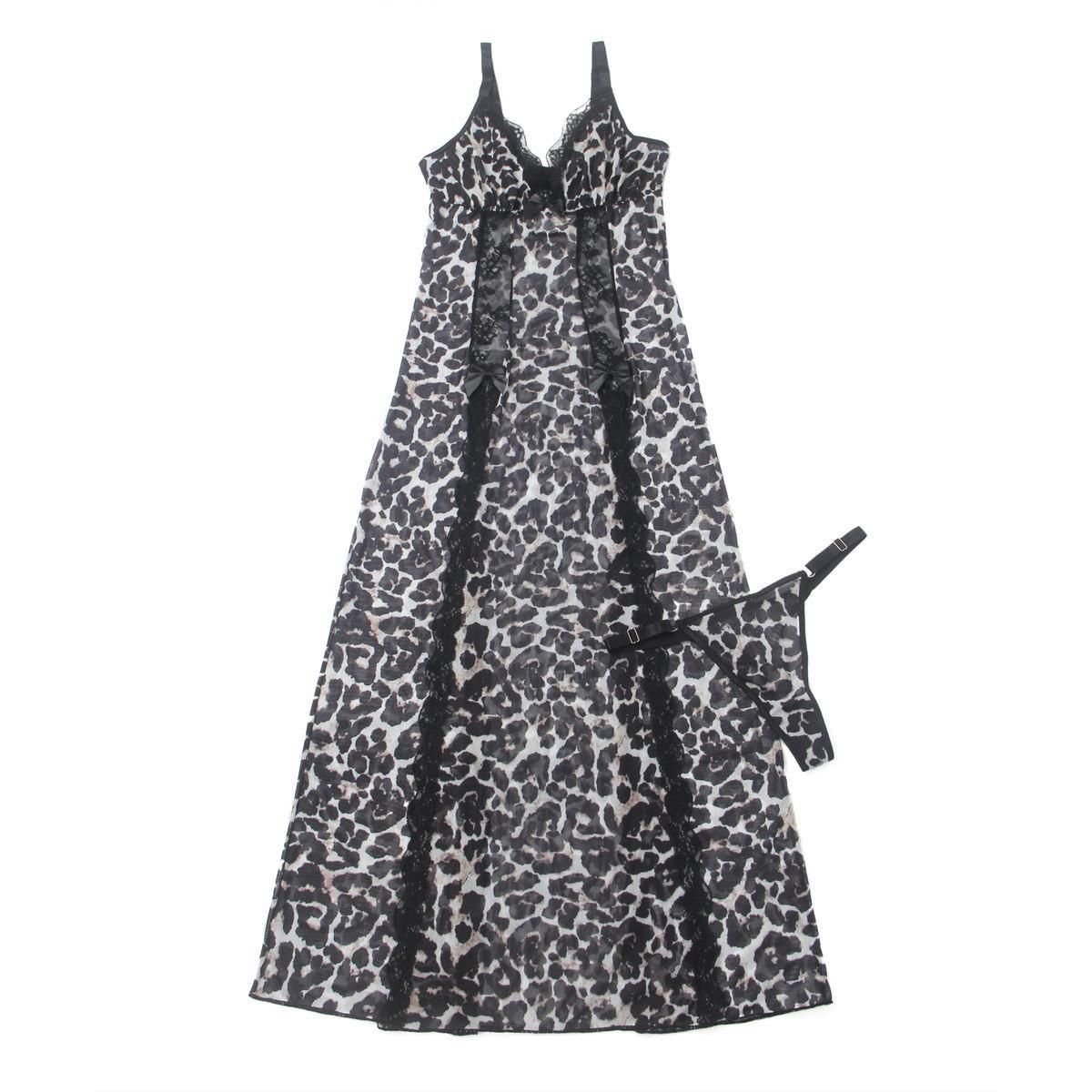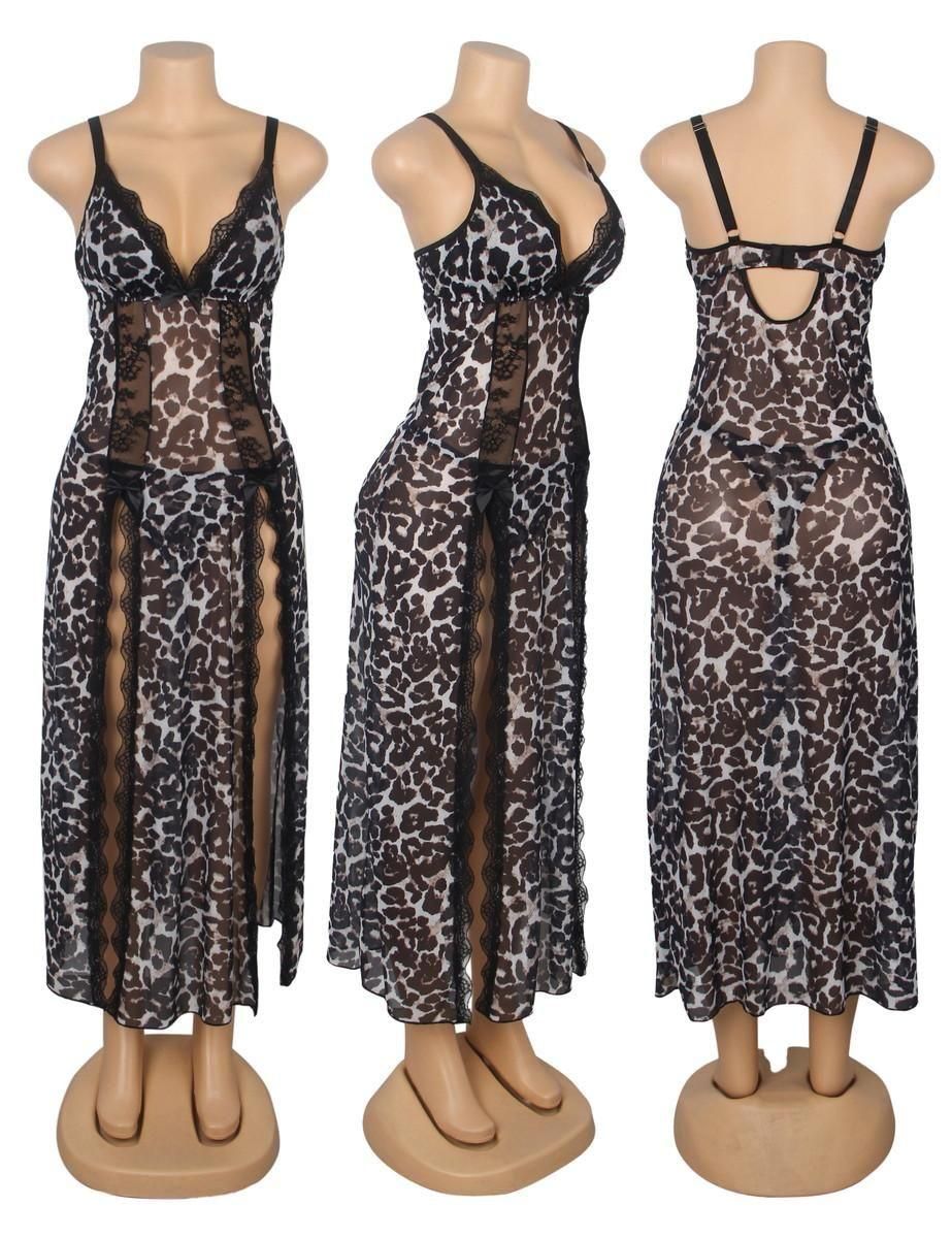 OY82062スノーレオパード 3XLサイズ【大きいサイズ】メッシュ×レース ロング スリットナイティ&Tバック【ロングベビードール】【スリップドレス】【プチプラ】【セクシーランジェリー】
